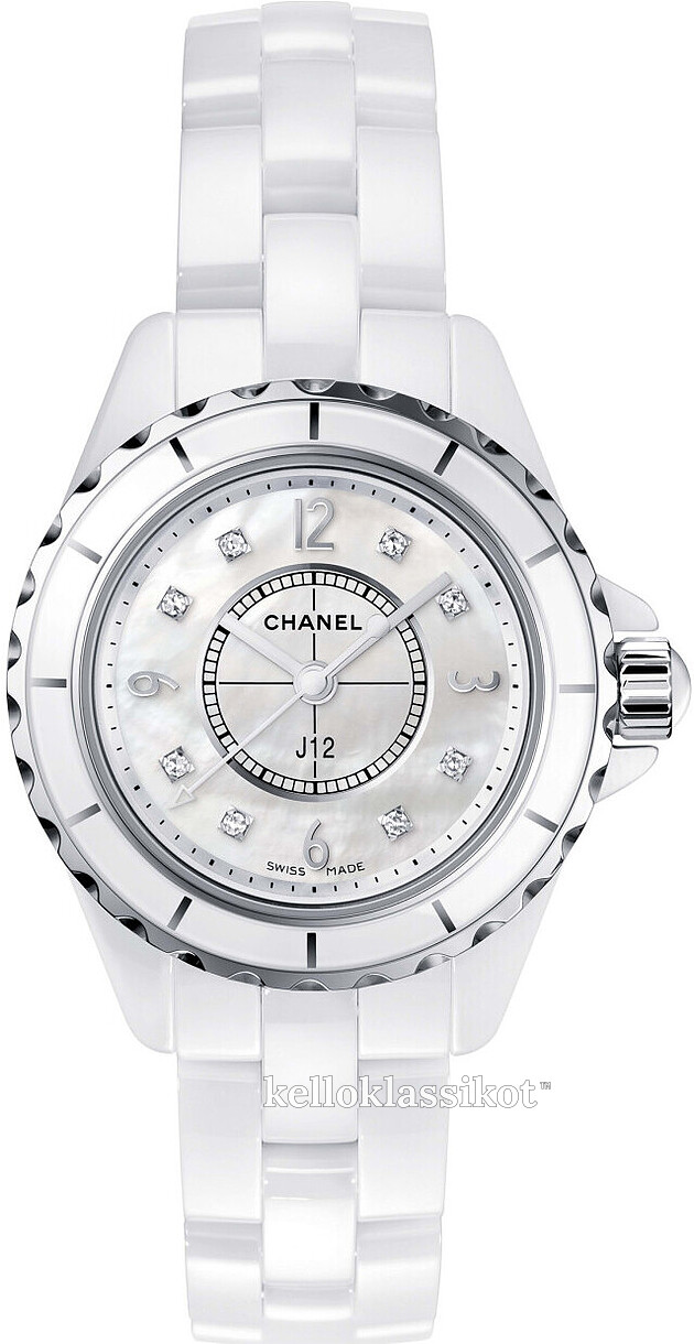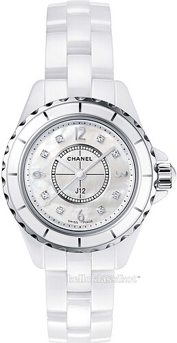 | Kellotaulu: | Valkoinen helmiäinen , timanteilla |