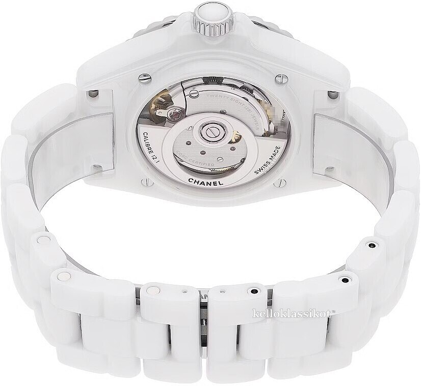| Kellon kehä (bezel): | Keraaminen teräs, valkoinen, pyöritettävä myötäpäivään |