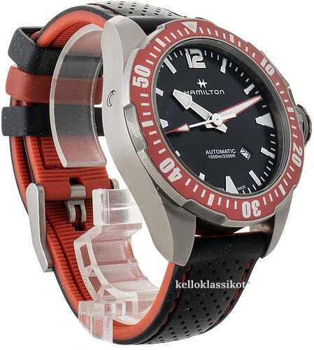 | Kellon kehä (bezel): | Titaani, punainen, pyöritettävä myötäpäivään |