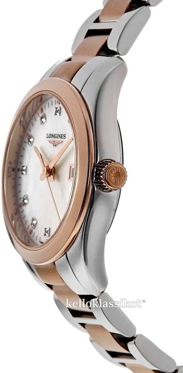 | Kellotaulu: | Valkoinen helmiäinen , timanteilla ja tuntimerkinnöillä |