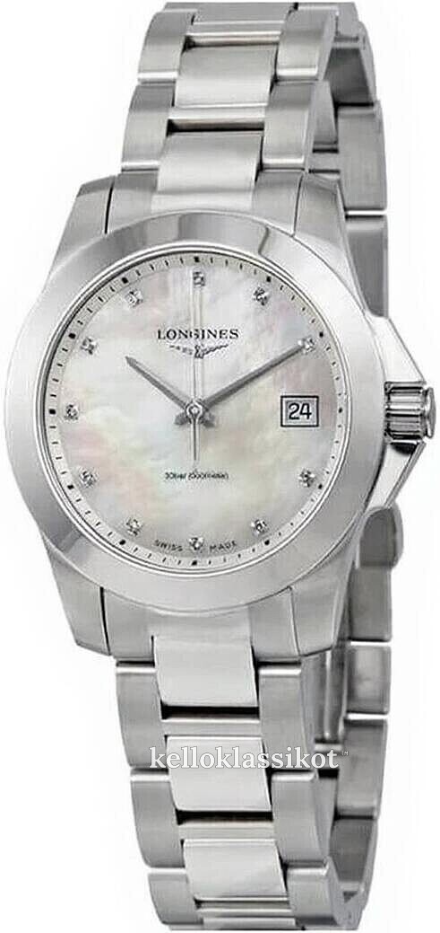 | Kellotaulu: | Valkoinen helmiäinen , timanteilla |