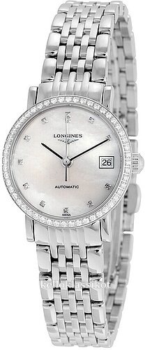 | Kellotaulu: | Valkoinen helmiäinen , timanteilla |