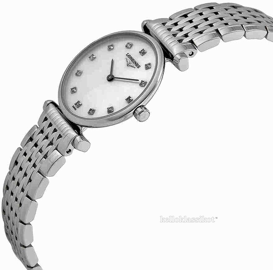 | Kellotaulu: | Valkoinen helmiäinen , timanteilla ja tuntimerkinnöillä |