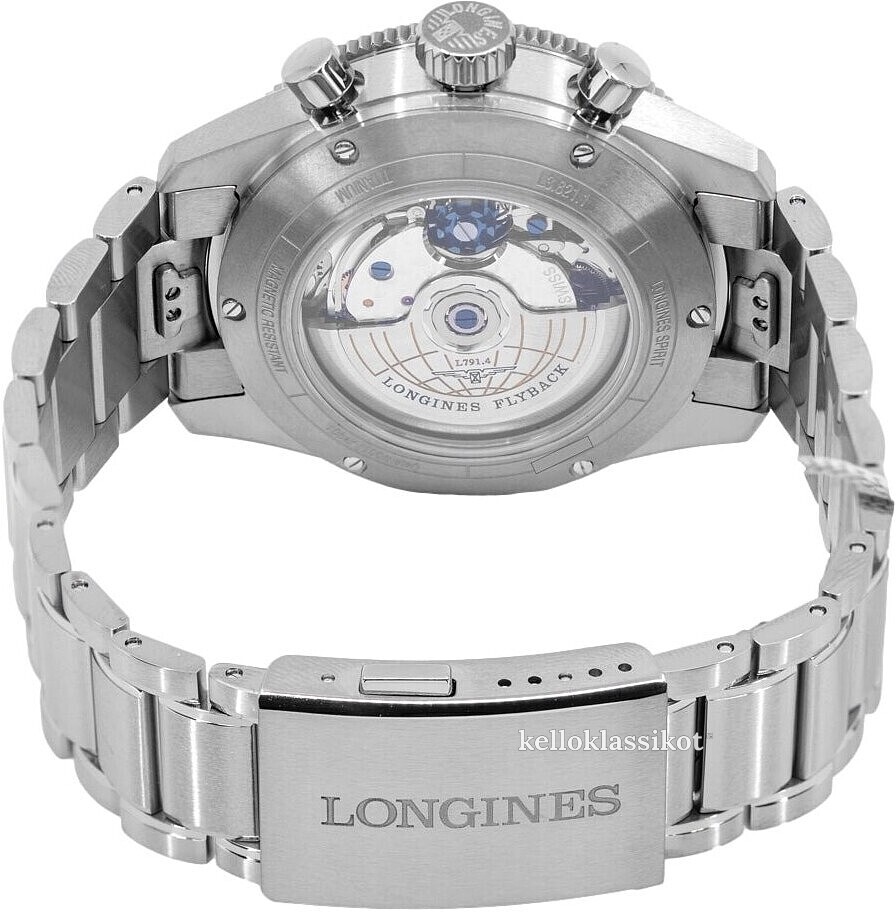 | Koneisto: | Longines L791.4 (koneisto ETA A08.L11) , 28 jalokiveä, 28800 vph |