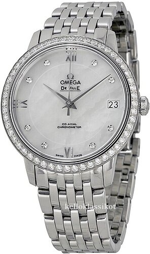 | Kellotaulu: | Valkoinen helmiäinen , timanteilla |