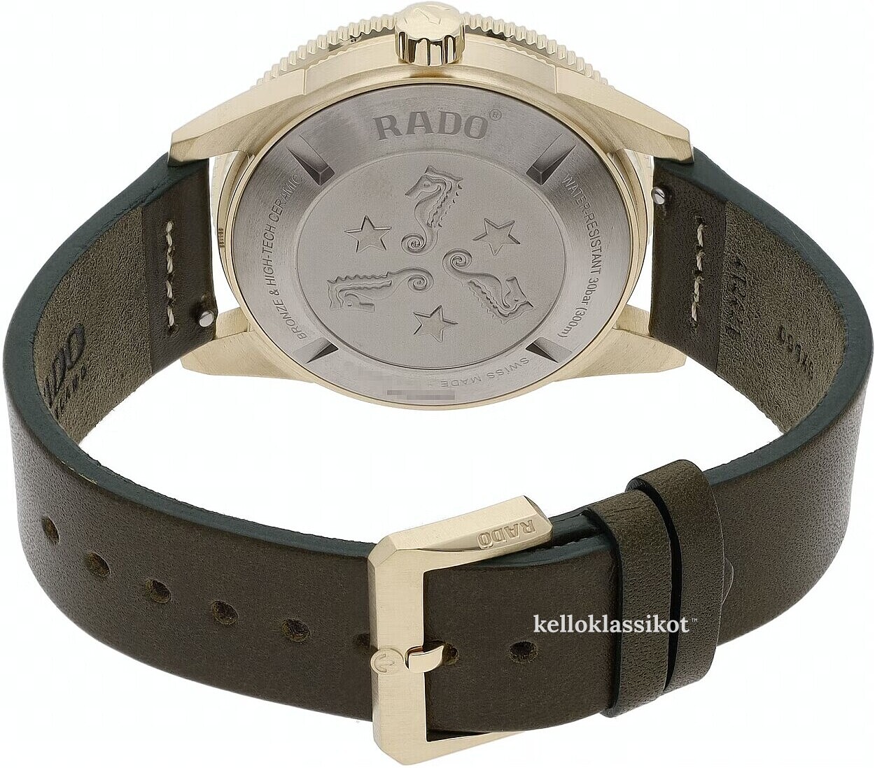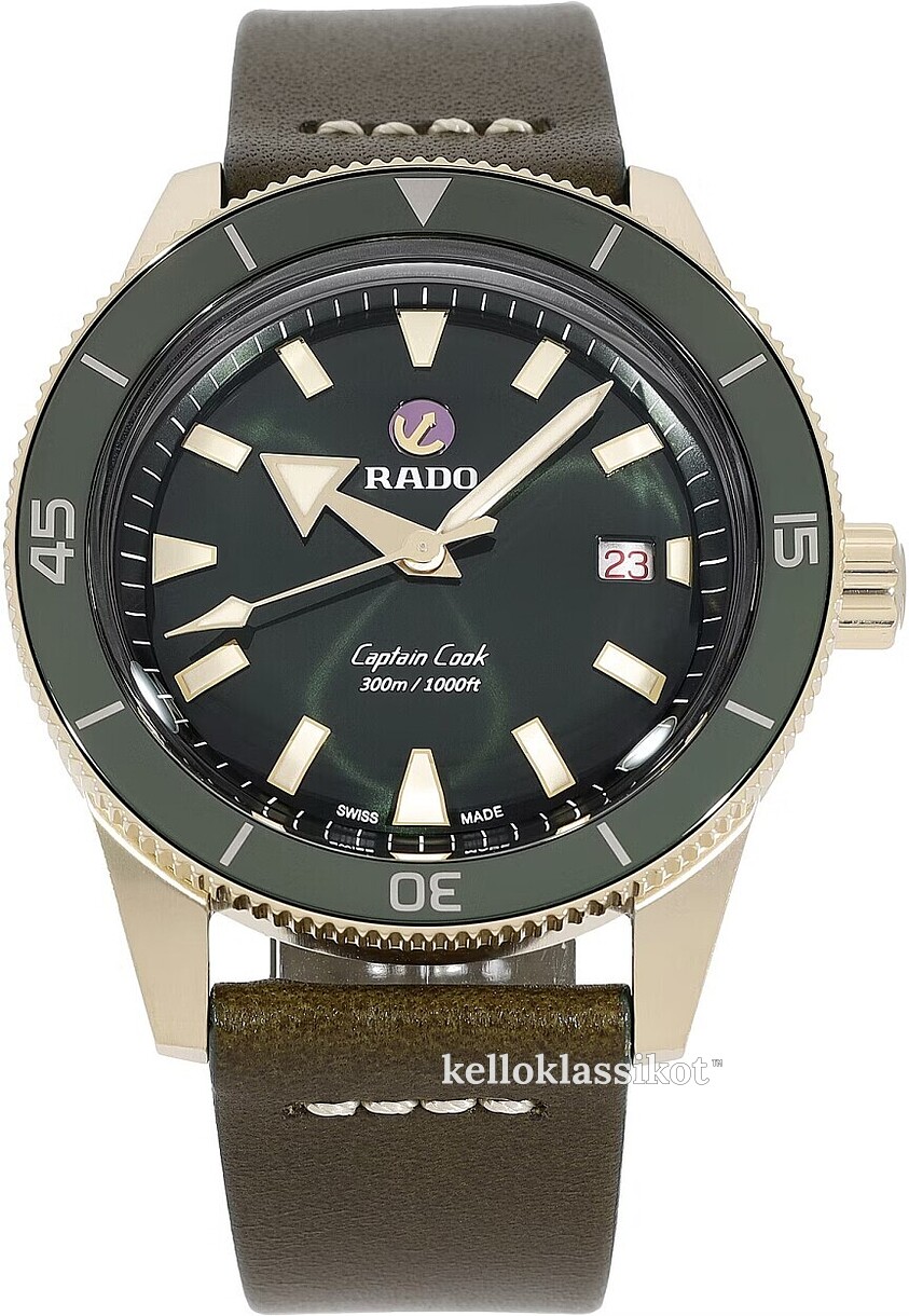 | Kellon kehä (bezel): | Keraaminen pronssi, vihreä, pyöritettävä myötäpäivään |