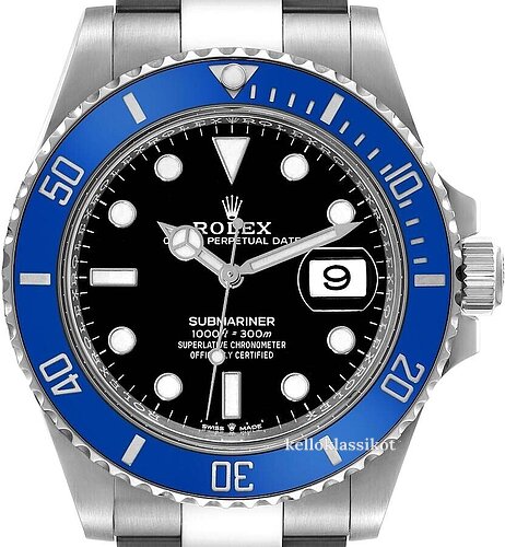 | Kellon kehä (bezel): | Keraaminen 18K valkokultaa, sininen, pyöritettävä myötäpäivään |