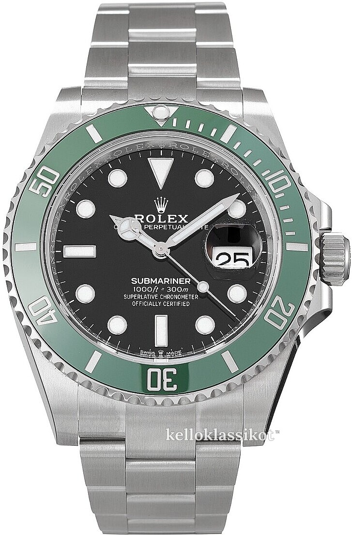 | Kellon kehä (bezel): | Keraaminen, vihreä, pyöritettävä myötäpäivään |