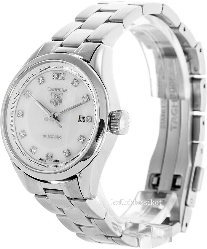 | Kellotaulu: | Valkoinen helmiäinen , timanteilla |