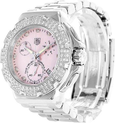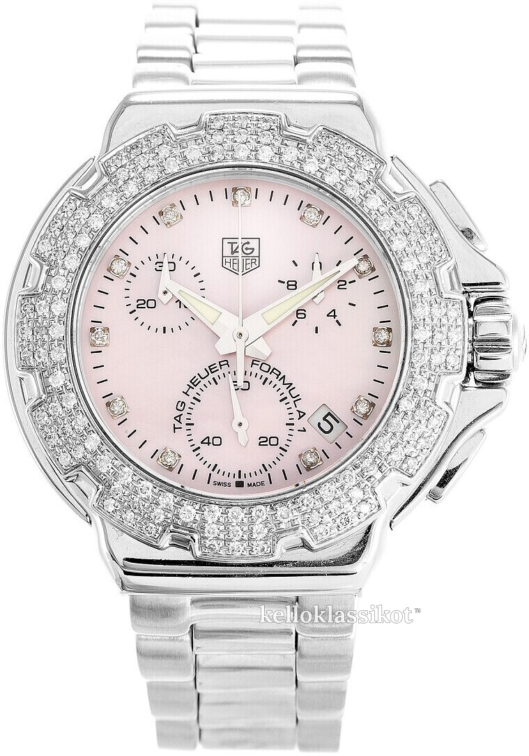 | Kellotaulu: | Pinkki helmiäinen , timanteilla |