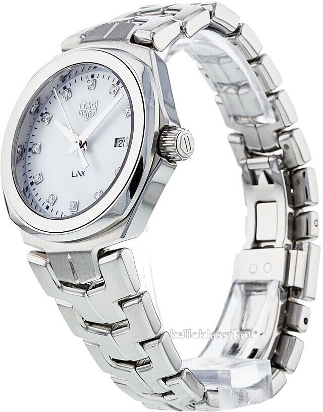 | Kellotaulu: | Valkoinen helmiäinen , timanteilla ja tuntimerkinnöillä |